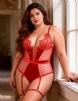 Product Name Plus Size Blue Satin Lace Stitching Teddy With Garter