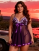 Home > Wholesale Plus Size Lingerie > Sexy Rhinestone See-through Dark Purple Plus Size Nightdress