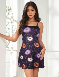 Product Name Purple Print Suspender Home Wear Pajama