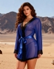 Product Name Sexy Long Sleeve Blue Mesh Sleepwear With Belt