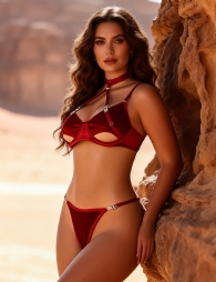 Home > Bra & Bra Sets Supplier > Red Sexy Velvet Hollow Cut Halter Bra Set