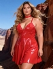 Home > Wholesale Plus Size Lingerie > Black Sexy Deep V-Neck Wet Look Faux Leather Suspender Nightdress